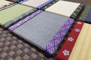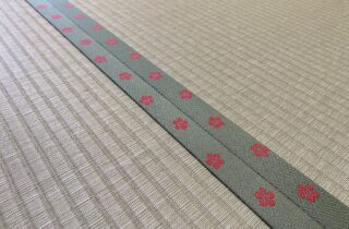 菊の畳縁×白茶色の和紙畳 お部屋に合わせて製作いたします。