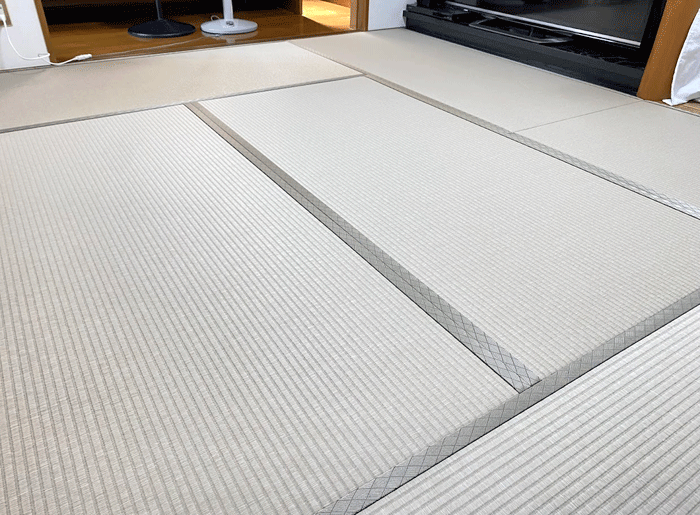 ホーム 製品紹介 サービス・料金 施工の流れ 井上製畳所について お知らせ/施工事例 お問い合わせ お知らせ/施工事例 銀白カラー灰桜色 い草から和紙畳に ○ ダイケン和紙畳 新調 畳表 : 銀白カラー 灰桜色 畳縁 : オールウェイズ No22 (高田織物) 畳床 : ダイケン畳床 厚み : 55㎜ 六畳間 新調 16,000円 × 6帖 96,000円 (税込) + 畳シート 400円/帖 (床掃除後に畳シート敷き込み) 「井上製畳所」 が製作する畳は全て オーダー 品です。 <お部屋の寸法・歪み・柱型・厚み等を正確に採寸し畳を製作致します> 2024年9月7日 « 前の記事へ 次の記事へ » アーカイブ 2026年1月 (25) 2025年12月 (26) 2025年11月 (23) 2025年10月 (23) 2025年9月 (26) 2025年8月 (22) 2025年7月 (27) 2025年6月 (24) 2025年5月 (27) 2025年4月 (25) 2025年3月 (26) 2025年2月 (24) 2025年1月 (24) 2024年12月 (23) 2024年11月 (23) 2024年10月 (28) 2024年9月 (23) 2024年8月 (26) 2024年7月 (28) 2024年6月 (26) 2024年5月 (25) 2024年4月 (31) 2024年3月 (28) 2024年2月 (24) 2024年1月 (21) 2023年12月 (29) 2023年11月 (27) 2023年10月 (29) 2023年9月 (28) 2023年8月 (21) 2023年7月 (15) 2023年6月 (2) カテゴリー 「ダイケン和紙畳」(一畳サイズ縁付き) (258) 「琉球畳」(ダイケン和紙畳・半畳サイズ) (217) 「畳」施工例集 (543) ○い草 施工例集 (45) ○セキスイ美草(樹脂畳) (17) ○ふすま紙 張替 (106) ○小畳・縁雑貨 (134) ○洋室に畳・置き畳 (44) ○障子紙 張替 (54) ●お知らせ (29) ●定休日・営業時間 (9) ラインナップ (4) 畳縁 (5)