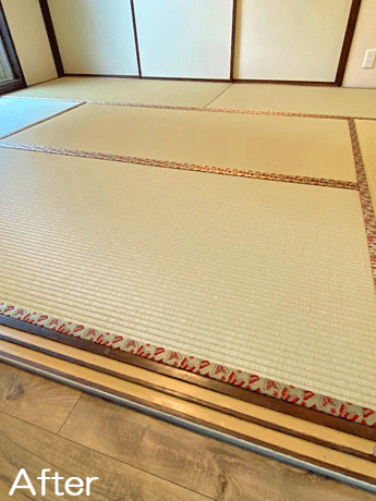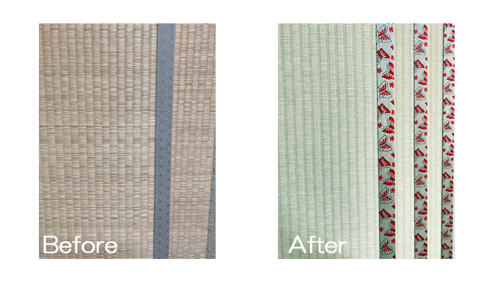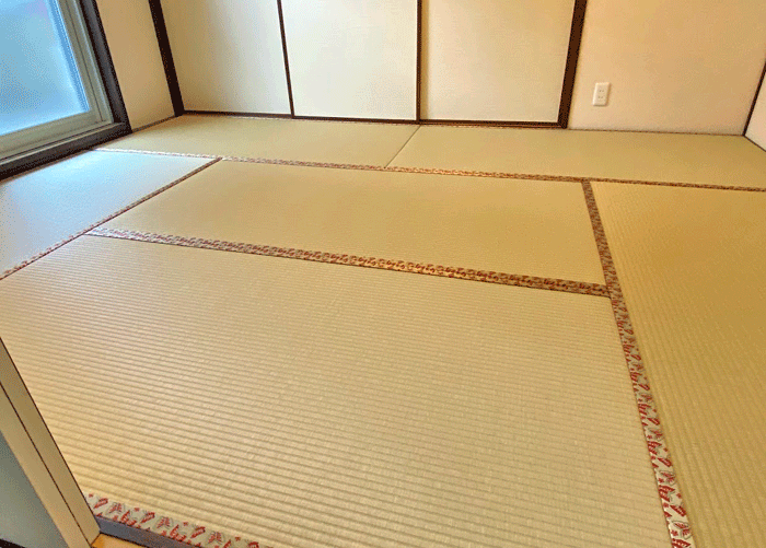 ホーム 製品紹介 サービス・料金 施工の流れ 井上製畳所について お知らせ/施工事例 お問い合わせ お知らせ/施工事例 い草から和紙畳表に張替+蝶の畳縁 ○ 畳 表替 畳表 : ダイケン和紙畳表 「銀白100A」 若草色 畳縁 : 開運福太郎 No12 蝶 (高田織物) 厚み : 60㎜ 六畳間 表替 価格 : 9,000円 × 6帖 54,000円 (税込) 畳シート 400円/帖 2024年9月27日 « 前の記事へ 次の記事へ » アーカイブ 2026年1月 (25) 2025年12月 (26) 2025年11月 (23) 2025年10月 (23) 2025年9月 (26) 2025年8月 (22) 2025年7月 (27) 2025年6月 (24) 2025年5月 (27) 2025年4月 (25) 2025年3月 (26) 2025年2月 (24) 2025年1月 (24) 2024年12月 (23) 2024年11月 (23) 2024年10月 (28) 2024年9月 (23) 2024年8月 (26) 2024年7月 (28) 2024年6月 (26) 2024年5月 (25) 2024年4月 (31) 2024年3月 (28) 2024年2月 (24) 2024年1月 (21) 2023年12月 (29) 2023年11月 (27) 2023年10月 (29) 2023年9月 (28) 2023年8月 (21) 2023年7月 (15) 2023年6月 (2) カテゴリー 「ダイケン和紙畳」(一畳サイズ縁付き) (258) 「琉球畳」(ダイケン和紙畳・半畳サイズ) (217) 「畳」施工例集 (543) ○い草 施工例集 (45) ○セキスイ美草(樹脂畳) (17) ○ふすま紙 張替 (106) ○小畳・縁雑貨 (134) ○洋室に畳・置き畳 (44) ○障子紙 張替 (54) ●お知らせ (29) ●定休日・営業時間 (9) ラインナップ (4) 畳縁 (5)