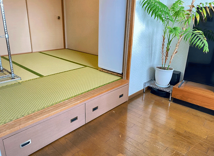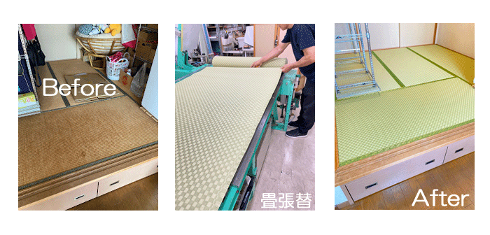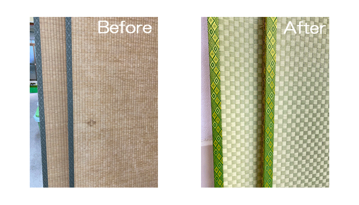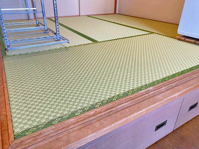 ホーム 製品紹介 サービス・料金 施工の流れ 井上製畳所について お知らせ/施工事例 お問い合わせ お知らせ/施工事例 市松の和紙畳に張替 4畳半間 ○ ダイケン和紙畳 表替 畳表:「銀白 市松 01」 畳縁 : 大宮G 舛菊 鶯 (高田織物) 厚み:55㎜ 4畳半間 価格:11,000円 × 4.5帖 49,500円 (税込) 2024年10月1日 « 前の記事へ 次の記事へ » アーカイブ 2026年1月 (25) 2025年12月 (26) 2025年11月 (23) 2025年10月 (23) 2025年9月 (26) 2025年8月 (22) 2025年7月 (27) 2025年6月 (24) 2025年5月 (27) 2025年4月 (25) 2025年3月 (26) 2025年2月 (24) 2025年1月 (24) 2024年12月 (23) 2024年11月 (23) 2024年10月 (28) 2024年9月 (23) 2024年8月 (26) 2024年7月 (28) 2024年6月 (26) 2024年5月 (25) 2024年4月 (31) 2024年3月 (28) 2024年2月 (24) 2024年1月 (21) 2023年12月 (29) 2023年11月 (27) 2023年10月 (29) 2023年9月 (28) 2023年8月 (21) 2023年7月 (15) 2023年6月 (2) カテゴリー 「ダイケン和紙畳」(一畳サイズ縁付き) (258) 「琉球畳」(ダイケン和紙畳・半畳サイズ) (217) 「畳」施工例集 (543) ○い草 施工例集 (45) ○セキスイ美草(樹脂畳) (17) ○ふすま紙 張替 (106) ○小畳・縁雑貨 (134) ○洋室に畳・置き畳 (44) ○障子紙 張替 (54) ●お知らせ (29) ●定休日・営業時間 (9) ラインナップ (4) 畳縁 (5)