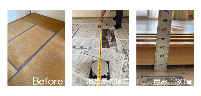 ホーム 製品紹介 サービス・料金 施工の流れ 井上製畳所について お知らせ/施工事例 お問い合わせ お知らせ/施工事例 「松竹梅」の畳縁×「銀白100A」 新調 ○ ダイケン和紙畳 新調 畳表 : 銀白100A 銀白色 畳縁 : 花のエッセイ No300・松竹梅 (高田織物) 畳床 : ダイケン畳床 厚み : 30㎜ 六畳間 新調 価格 : 15,500円 × 6帖 93,000円 (税込) 「井上製畳所」 が製作する畳は全て オーダー 品です。 <お部屋の寸法・歪み・柱型・厚み等を正確に採寸し畳を製作致します> 2024年10月25日 « 前の記事へ 次の記事へ » アーカイブ 2026年1月 (25) 2025年12月 (26) 2025年11月 (23) 2025年10月 (23) 2025年9月 (26) 2025年8月 (22) 2025年7月 (27) 2025年6月 (24) 2025年5月 (27) 2025年4月 (25) 2025年3月 (26) 2025年2月 (24) 2025年1月 (24) 2024年12月 (23) 2024年11月 (23) 2024年10月 (28) 2024年9月 (23) 2024年8月 (26) 2024年7月 (28) 2024年6月 (26) 2024年5月 (25) 2024年4月 (31) 2024年3月 (28) 2024年2月 (24) 2024年1月 (21) 2023年12月 (29) 2023年11月 (27) 2023年10月 (29) 2023年9月 (28) 2023年8月 (21) 2023年7月 (15) 2023年6月 (2) カテゴリー 「ダイケン和紙畳」(一畳サイズ縁付き) (258) 「琉球畳」(ダイケン和紙畳・半畳サイズ) (217) 「畳」施工例集 (543) ○い草 施工例集 (45) ○セキスイ美草(樹脂畳) (17) ○ふすま紙 張替 (106) ○小畳・縁雑貨 (134) ○洋室に畳・置き畳 (44) ○障子紙 張替 (54) ●お知らせ (29) ●定休日・営業時間 (9) ラインナップ (4) 畳縁 (5)