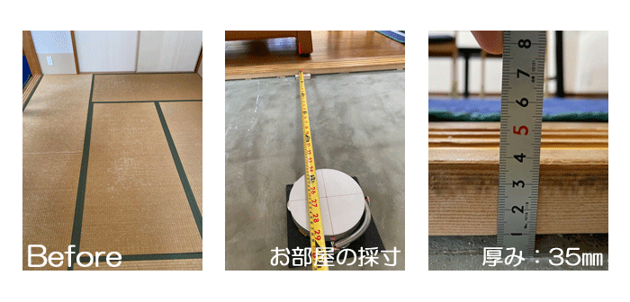 <お部屋の寸法・歪み・柱型・厚み等を正確に採寸し畳を製作致します>