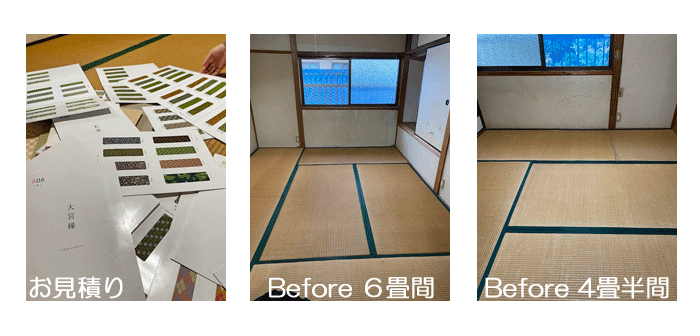 「い草」から「ダイケン和紙畳表・銀白100A・黄金色」に張替