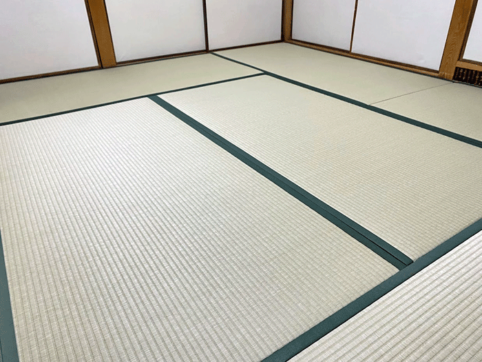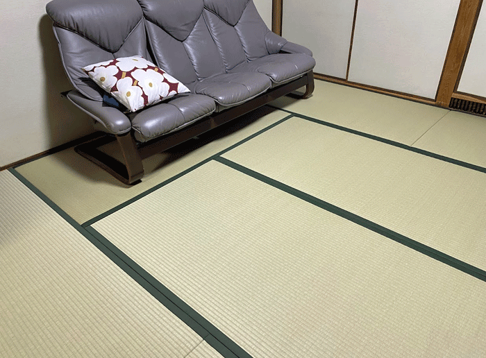 ホーム 製品紹介 サービス・料金 施工の流れ 井上製畳所について お知らせ/施工事例 お問い合わせ お知らせ/施工事例 い草から和紙畳に表替 若草色 施工前~作業風景~ ○ ダイケン和紙畳 表替 畳表 : 銀白100A 若草色 畳縁 : 禅 No20 千歳緑 (高田織物) 厚み : 55㎜ 八帖間 表替 価格 : 9,000円 × 8帖 72,000円 (税込) 2025年1月22日 « 前の記事へ 次の記事へ » アーカイブ 2026年1月 (25) 2025年12月 (26) 2025年11月 (23) 2025年10月 (23) 2025年9月 (26) 2025年8月 (22) 2025年7月 (27) 2025年6月 (24) 2025年5月 (27) 2025年4月 (25) 2025年3月 (26) 2025年2月 (24) 2025年1月 (24) 2024年12月 (23) 2024年11月 (23) 2024年10月 (28) 2024年9月 (23) 2024年8月 (26) 2024年7月 (28) 2024年6月 (26) 2024年5月 (25) 2024年4月 (31) 2024年3月 (28) 2024年2月 (24) 2024年1月 (21) 2023年12月 (29) 2023年11月 (27) 2023年10月 (29) 2023年9月 (28) 2023年8月 (21) 2023年7月 (15) 2023年6月 (2) カテゴリー 「ダイケン和紙畳」(一畳サイズ縁付き) (258) 「琉球畳」(ダイケン和紙畳・半畳サイズ) (217) 「畳」施工例集 (543) ○い草 施工例集 (45) ○セキスイ美草(樹脂畳) (17) ○ふすま紙 張替 (106) ○小畳・縁雑貨 (134) ○洋室に畳・置き畳 (44) ○障子紙 張替 (54) ●お知らせ (29) ●定休日・営業時間 (9) ラインナップ (4) 畳縁 (5)