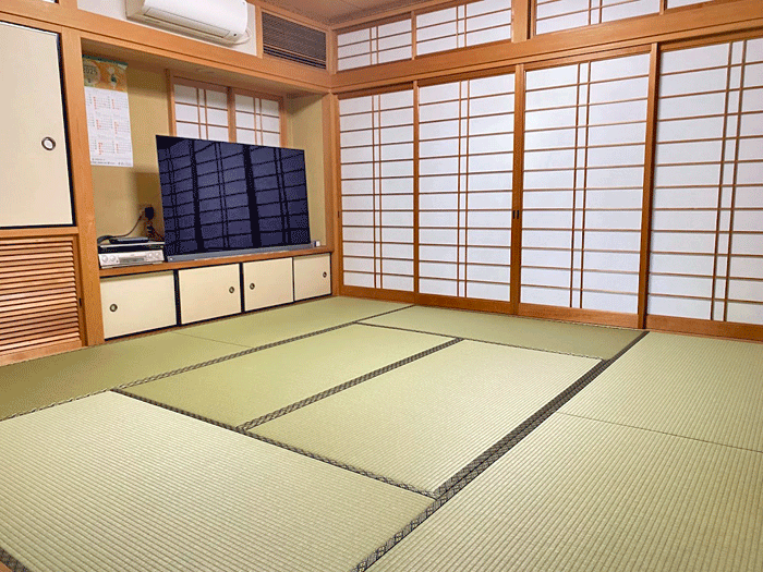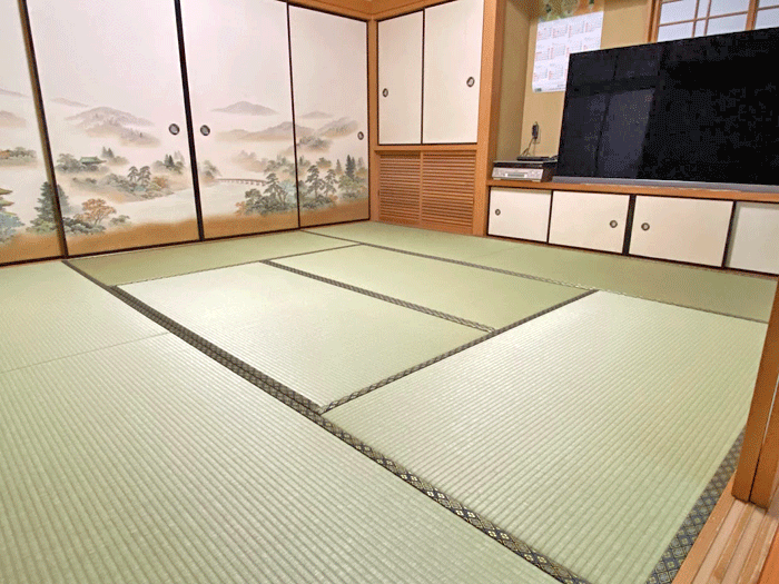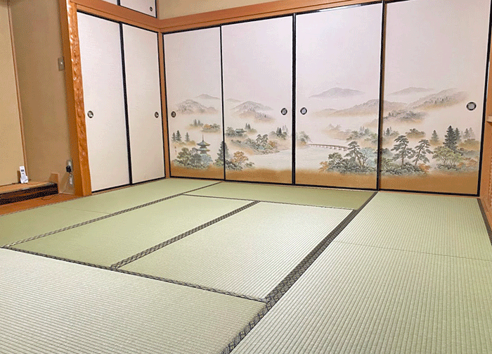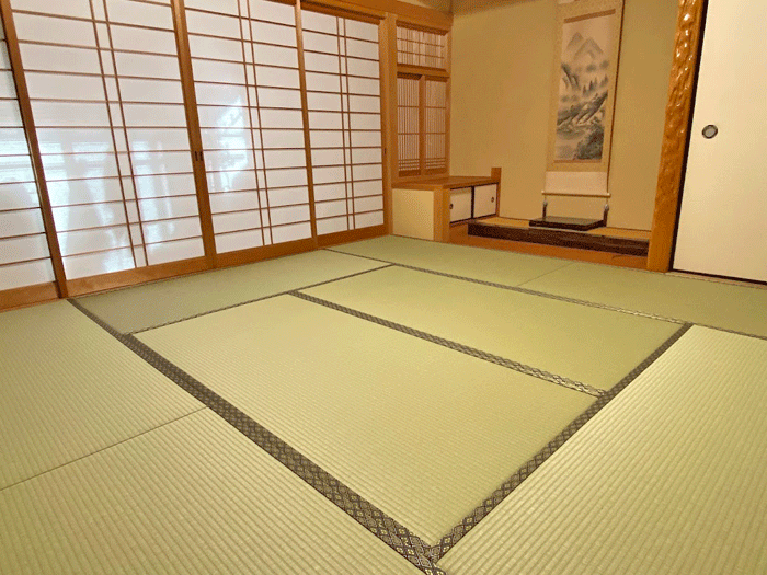 ホーム 製品紹介 サービス・料金 施工の流れ 井上製畳所について お知らせ/施工事例 お問い合わせ お知らせ/施工事例 表替 八畳間・ダイケン和紙畳・「銀白100A」 施工前 ~作業風景~ ○ ダイケン和紙畳 表替 畳表 : 銀白100A 銀白色 畳縁 : 新大宮 No110 高田織物 厚み : 55㎜ 価格 : 9,000円 × 8帖 72,000円 (税込) 2025年2月6日 « 前の記事へ 次の記事へ » アーカイブ 2026年1月 (25) 2025年12月 (26) 2025年11月 (23) 2025年10月 (23) 2025年9月 (26) 2025年8月 (22) 2025年7月 (27) 2025年6月 (24) 2025年5月 (27) 2025年4月 (25) 2025年3月 (26) 2025年2月 (24) 2025年1月 (24) 2024年12月 (23) 2024年11月 (23) 2024年10月 (28) 2024年9月 (23) 2024年8月 (26) 2024年7月 (28) 2024年6月 (26) 2024年5月 (25) 2024年4月 (31) 2024年3月 (28) 2024年2月 (24) 2024年1月 (21) 2023年12月 (29) 2023年11月 (27) 2023年10月 (29) 2023年9月 (28) 2023年8月 (21) 2023年7月 (15) 2023年6月 (2) カテゴリー 「ダイケン和紙畳」(一畳サイズ縁付き) (258) 「琉球畳」(ダイケン和紙畳・半畳サイズ) (217) 「畳」施工例集 (543) ○い草 施工例集 (45) ○セキスイ美草(樹脂畳) (17) ○ふすま紙 張替 (106) ○小畳・縁雑貨 (134) ○洋室に畳・置き畳 (44) ○障子紙 張替 (54) ●お知らせ (29) ●定休日・営業時間 (9) ラインナップ (4) 畳縁 (5)