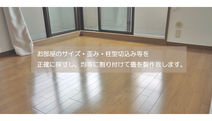 ホーム 製品紹介 サービス・料金 施工の流れ 井上製畳所について お知らせ/施工事例 お問い合わせ お知らせ/施工事例 「和」と洋の融合・フローリングに和紙畳 洋間・フローリングに畳を敷き込む仕様 ダイケン和紙畳 新調 畳表 : 「銀白100A 銀白色」 畳縁 : 織部 菊 No8 (高田織物) 畳床 : ダイケンⅠ型畳床 厚み : 30㎜ 価格 : 15,500円 × 4.5帖 69,750円 (税込) 「井上製畳所」 が製作する畳は全て オーダー 品です。 <お部屋の寸法・歪み・柱型・厚み等を正確に採寸し畳を製作致します> 2025年3月3日 « 前の記事へ 次の記事へ » アーカイブ 2026年1月 (25) 2025年12月 (26) 2025年11月 (23) 2025年10月 (23) 2025年9月 (26) 2025年8月 (22) 2025年7月 (27) 2025年6月 (24) 2025年5月 (27) 2025年4月 (25) 2025年3月 (26) 2025年2月 (24) 2025年1月 (24) 2024年12月 (23) 2024年11月 (23) 2024年10月 (28) 2024年9月 (23) 2024年8月 (26) 2024年7月 (28) 2024年6月 (26) 2024年5月 (25) 2024年4月 (31) 2024年3月 (28) 2024年2月 (24) 2024年1月 (21) 2023年12月 (29) 2023年11月 (27) 2023年10月 (29) 2023年9月 (28) 2023年8月 (21) 2023年7月 (15) 2023年6月 (2) カテゴリー 「ダイケン和紙畳」(一畳サイズ縁付き) (258) 「琉球畳」(ダイケン和紙畳・半畳サイズ) (217) 「畳」施工例集 (543) ○い草 施工例集 (45) ○セキスイ美草(樹脂畳) (17) ○ふすま紙 張替 (106) ○小畳・縁雑貨 (134) ○洋室に畳・置き畳 (44) ○障子紙 張替 (54) ●お知らせ (29) ●定休日・営業時間 (9) ラインナップ (4) 畳縁 (5)