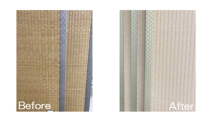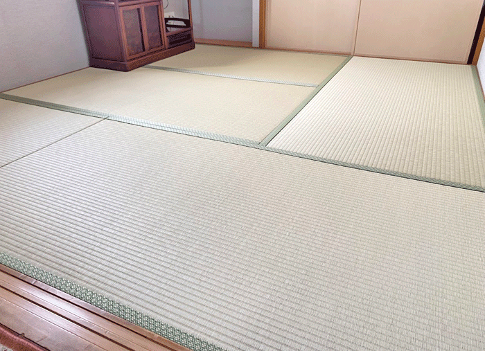 ホーム 製品紹介 サービス・料金 施工の流れ 井上製畳所について お知らせ/施工事例 お問い合わせ お知らせ/施工事例 四畳半間 和紙畳に張替 作業風景 ○ ダイケン和紙畳 表替 畳表 : 「銀白100A・若草色」 畳縁 : 九条 No5 (高田織物) 厚み : 55㎜ 四畳半間 表替 価格 : 9,000円 × 4.5帖 40,500円(税込) + 畳シート 400円/帖 2025年3月19日 « 前の記事へ 次の記事へ » アーカイブ 2026年1月 (25) 2025年12月 (26) 2025年11月 (23) 2025年10月 (23) 2025年9月 (26) 2025年8月 (22) 2025年7月 (27) 2025年6月 (24) 2025年5月 (27) 2025年4月 (25) 2025年3月 (26) 2025年2月 (24) 2025年1月 (24) 2024年12月 (23) 2024年11月 (23) 2024年10月 (28) 2024年9月 (23) 2024年8月 (26) 2024年7月 (28) 2024年6月 (26) 2024年5月 (25) 2024年4月 (31) 2024年3月 (28) 2024年2月 (24) 2024年1月 (21) 2023年12月 (29) 2023年11月 (27) 2023年10月 (29) 2023年9月 (28) 2023年8月 (21) 2023年7月 (15) 2023年6月 (2) カテゴリー 「ダイケン和紙畳」(一畳サイズ縁付き) (258) 「琉球畳」(ダイケン和紙畳・半畳サイズ) (217) 「畳」施工例集 (543) ○い草 施工例集 (45) ○セキスイ美草(樹脂畳) (17) ○ふすま紙 張替 (106) ○小畳・縁雑貨 (134) ○洋室に畳・置き畳 (44) ○障子紙 張替 (54) ●お知らせ (29) ●定休日・営業時間 (9) ラインナップ (4) 畳縁 (5)