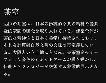 ホーム 製品紹介 サービス・料金 施工の流れ 井上製畳所について お知らせ/施工事例 お問い合わせ お知らせ/施工事例 大阪・関西万博・「null²」茶室畳 落合陽一プロデュース「いのちを磨く」 大阪・関西万博 シグネチャーパビリオン「null²」ヌルヌル 茶室の黒畳を製作させて頂きました。 2025年4月13日 « 前の記事へ 次の記事へ » アーカイブ 2026年1月 (11) 2025年12月 (26) 2025年11月 (23) 2025年10月 (23) 2025年9月 (26) 2025年8月 (22) 2025年7月 (27) 2025年6月 (24) 2025年5月 (27) 2025年4月 (25) 2025年3月 (26) 2025年2月 (24) 2025年1月 (24) 2024年12月 (23) 2024年11月 (23) 2024年10月 (28) 2024年9月 (23) 2024年8月 (26) 2024年7月 (28) 2024年6月 (26) 2024年5月 (25) 2024年4月 (31) 2024年3月 (28) 2024年2月 (24) 2024年1月 (21) 2023年12月 (29) 2023年11月 (27) 2023年10月 (29) 2023年9月 (28) 2023年8月 (21) 2023年7月 (15) 2023年6月 (2) カテゴリー 「ダイケン和紙畳」(一畳サイズ縁付き) (257) 「琉球畳」(ダイケン和紙畳・半畳サイズ) (215) 「畳」施工例集 (536) ○い草 施工例集 (44) ○セキスイ美草(樹脂畳) (14) ○ふすま紙 張替 (104) ○小畳・縁雑貨 (132) ○洋室に畳・置き畳 (44) ○障子紙 張替 (53) ●お知らせ (28) ●定休日・営業時間 (9) ラインナップ (4) 畳縁 (5)