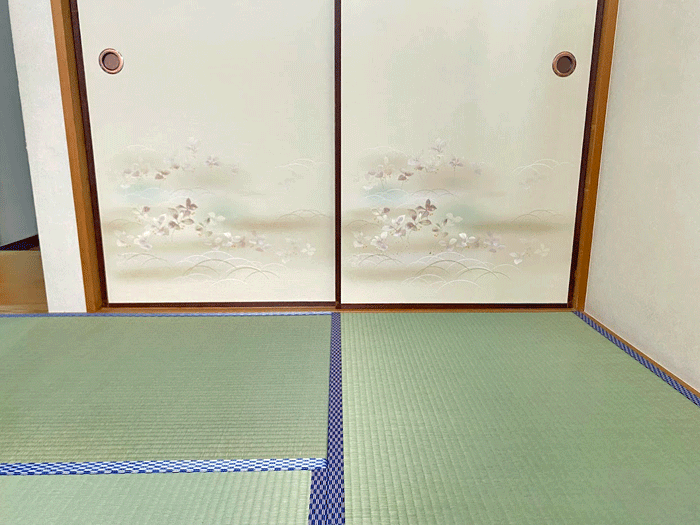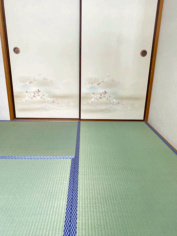 ホーム 製品紹介 サービス・料金 施工の流れ 井上製畳所について お知らせ/施工事例 お問い合わせ お知らせ/施工事例 い草・熊本県産 「ひのみどり・麻綿W」に張替 畳表:い草 熊本県産「ひのみどり・麻綿W畳表」 染土除去加工(空拭き不要) 防カビ加工 畳縁:鯔背 矢羽 (高田織物) 六畳間 表替 厚み:55㎜ 襖紙 張替:高級織物襖紙「朱雀 No170」 2025年6月5日 « 前の記事へ 次の記事へ » アーカイブ 2026年1月 (25) 2025年12月 (26) 2025年11月 (23) 2025年10月 (23) 2025年9月 (26) 2025年8月 (22) 2025年7月 (27) 2025年6月 (24) 2025年5月 (27) 2025年4月 (25) 2025年3月 (26) 2025年2月 (24) 2025年1月 (24) 2024年12月 (23) 2024年11月 (23) 2024年10月 (28) 2024年9月 (23) 2024年8月 (26) 2024年7月 (28) 2024年6月 (26) 2024年5月 (25) 2024年4月 (31) 2024年3月 (28) 2024年2月 (24) 2024年1月 (21) 2023年12月 (29) 2023年11月 (27) 2023年10月 (29) 2023年9月 (28) 2023年8月 (21) 2023年7月 (15) 2023年6月 (2) カテゴリー 「ダイケン和紙畳」(一畳サイズ縁付き) (258) 「琉球畳」(ダイケン和紙畳・半畳サイズ) (217) 「畳」施工例集 (543) ○い草 施工例集 (45) ○セキスイ美草(樹脂畳) (17) ○ふすま紙 張替 (106) ○小畳・縁雑貨 (134) ○洋室に畳・置き畳 (44) ○障子紙 張替 (54) ●お知らせ (29) ●定休日・営業時間 (9) ラインナップ (4) 畳縁 (5)