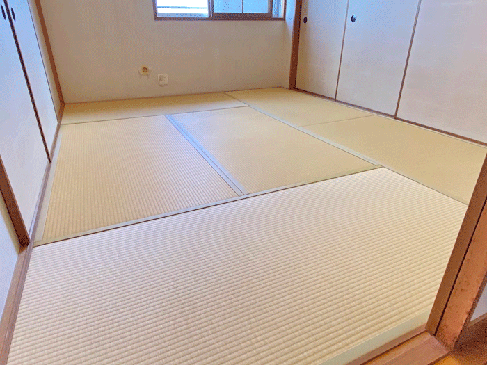 ホーム 製品紹介 サービス・料金 施工の流れ 井上製畳所について お知らせ/施工事例 お問い合わせ お知らせ/施工事例 黄金色のダイケン和紙畳・施工前~施工後 作業風景 ○ ダイケン和紙畳 新調 畳表 : 銀白100A 黄金色 畳縁 : ストリーム・黄金色 (高田織物) 畳床 : ダイケン畳床 厚み : 55㎜ 新調 六畳間 価格 : 15,500円 × 6帖 93,000円 (税込) +畳シート(床掃除後に敷き込み)400円/帖 「井上製畳所」 が製作する畳は全て オーダー 品です。 <お部屋の寸法・歪み・柱型・厚み等を正確に採寸し畳を製作致します 2025年6月19日 « 前の記事へ 次の記事へ » アーカイブ 2026年1月 (25) 2025年12月 (26) 2025年11月 (23) 2025年10月 (23) 2025年9月 (26) 2025年8月 (22) 2025年7月 (27) 2025年6月 (24) 2025年5月 (27) 2025年4月 (25) 2025年3月 (26) 2025年2月 (24) 2025年1月 (24) 2024年12月 (23) 2024年11月 (23) 2024年10月 (28) 2024年9月 (23) 2024年8月 (26) 2024年7月 (28) 2024年6月 (26) 2024年5月 (25) 2024年4月 (31) 2024年3月 (28) 2024年2月 (24) 2024年1月 (21) 2023年12月 (29) 2023年11月 (27) 2023年10月 (29) 2023年9月 (28) 2023年8月 (21) 2023年7月 (15) 2023年6月 (2) カテゴリー 「ダイケン和紙畳」(一畳サイズ縁付き) (258) 「琉球畳」(ダイケン和紙畳・半畳サイズ) (217) 「畳」施工例集 (543) ○い草 施工例集 (45) ○セキスイ美草(樹脂畳) (17) ○ふすま紙 張替 (106) ○小畳・縁雑貨 (134) ○洋室に畳・置き畳 (44) ○障子紙 張替 (54) ●お知らせ (29) ●定休日・営業時間 (9) ラインナップ (4) 畳縁 (5)