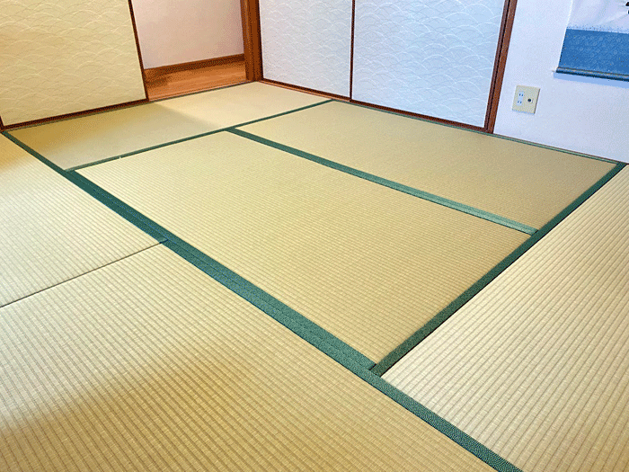 ホーム 製品紹介 サービス・料金 施工の流れ 井上製畳所について お知らせ/施工事例 お問い合わせ お知らせ/施工事例 「畳表替」銀白100A・若草色×鯔背・鮫 ダイケン和紙畳 表替 畳表 :銀白100A・ 若草色 畳縁 :鯔背・鮫・緑 (高田織物) 厚み:55㎜ 価格:9,000円 × 6帖 54,000円 (税込) 畳シート(床掃除後に敷き込み)400円/帖 2025年6月24日 « 前の記事へ 次の記事へ » アーカイブ 2026年1月 (25) 2025年12月 (26) 2025年11月 (23) 2025年10月 (23) 2025年9月 (26) 2025年8月 (22) 2025年7月 (27) 2025年6月 (24) 2025年5月 (27) 2025年4月 (25) 2025年3月 (26) 2025年2月 (24) 2025年1月 (24) 2024年12月 (23) 2024年11月 (23) 2024年10月 (28) 2024年9月 (23) 2024年8月 (26) 2024年7月 (28) 2024年6月 (26) 2024年5月 (25) 2024年4月 (31) 2024年3月 (28) 2024年2月 (24) 2024年1月 (21) 2023年12月 (29) 2023年11月 (27) 2023年10月 (29) 2023年9月 (28) 2023年8月 (21) 2023年7月 (15) 2023年6月 (2) カテゴリー 「ダイケン和紙畳」(一畳サイズ縁付き) (258) 「琉球畳」(ダイケン和紙畳・半畳サイズ) (217) 「畳」施工例集 (543) ○い草 施工例集 (45) ○セキスイ美草(樹脂畳) (17) ○ふすま紙 張替 (106) ○小畳・縁雑貨 (134) ○洋室に畳・置き畳 (44) ○障子紙 張替 (54) ●お知らせ (29) ●定休日・営業時間 (9) ラインナップ (4) 畳縁 (5)