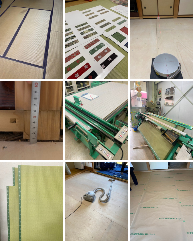 お見積り・お部屋の採寸・製作・床掃除後に畳シート敷き込み・納品