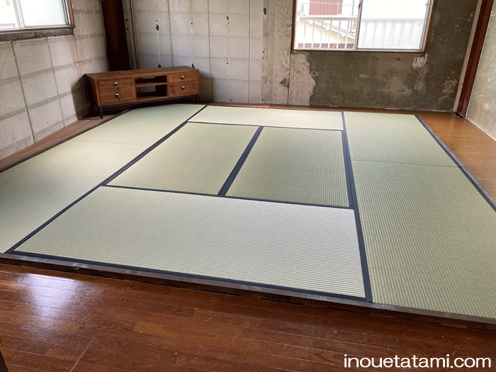 ホーム 製品紹介 サービス・料金 施工の流れ 井上製畳所について お知らせ/施工事例 お問い合わせ お知らせ/施工事例 「自然の恵みでくつろぐ」熊本い草のぬくもり畳空間 ○ い草 : 国産畳表 熊本県 八代産 : 「ひのみどり ・ 麻綿W表」 (品質証明書・出荷証明書付き国産畳おもて) 染土除却加工表(空拭き不要) 防カビ加工表 畳縁 : 御座縁 黒 (高田織物) 八畳間 新調 本間サイズ 「井上製畳所」 が製作する畳は全て オーダー 品です。 <お部屋の寸法・歪み・柱型・厚み等を正確に採寸し畳を製作致します> 2025年10月9日 « 前の記事へ 次の記事へ » アーカイブ 2026年1月 (25) 2025年12月 (26) 2025年11月 (23) 2025年10月 (23) 2025年9月 (26) 2025年8月 (22) 2025年7月 (27) 2025年6月 (24) 2025年5月 (27) 2025年4月 (25) 2025年3月 (26) 2025年2月 (24) 2025年1月 (24) 2024年12月 (23) 2024年11月 (23) 2024年10月 (28) 2024年9月 (23) 2024年8月 (26) 2024年7月 (28) 2024年6月 (26) 2024年5月 (25) 2024年4月 (31) 2024年3月 (28) 2024年2月 (24) 2024年1月 (21) 2023年12月 (29) 2023年11月 (27) 2023年10月 (29) 2023年9月 (28) 2023年8月 (21) 2023年7月 (15) 2023年6月 (2) カテゴリー 「ダイケン和紙畳」(一畳サイズ縁付き) (258) 「琉球畳」(ダイケン和紙畳・半畳サイズ) (217) 「畳」施工例集 (543) ○い草 施工例集 (45) ○セキスイ美草(樹脂畳) (17) ○ふすま紙 張替 (106) ○小畳・縁雑貨 (134) ○洋室に畳・置き畳 (44) ○障子紙 張替 (54) ●お知らせ (29) ●定休日・営業時間 (9) ラインナップ (4) 畳縁 (5)