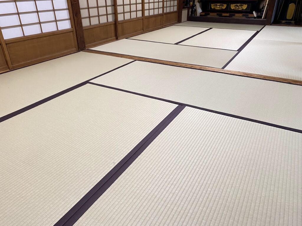 ホーム 製品紹介 サービス・料金 施工の流れ 井上製畳所について お知らせ/施工事例 お問い合わせ お知らせ/施工事例 い草からささくれない和紙畳に張替 寺院畳 ダイケン和紙畳 表替 本間サイズ(幅90㎝以上) 「銀白 ・ 100A」 若草色 畳縁 : 「御座縁・茶色」 (高田織物) 六畳間 × 四畳半間 価格 10,000円 × 10.5帖 105,000円 (税込) <ダイケン和紙畳表> ○ ダニ ・ カビが発生しない畳表 ○ 撥水性・耐久性に優れている畳表 ○ 変色せず美しさが長持ちし・ささくれない畳表 ○ 清潔で安全・安心な畳表 2025年11月13日 « 前の記事へ 次の記事へ » アーカイブ 2026年1月 (11) 2025年12月 (26) 2025年11月 (23) 2025年10月 (23) 2025年9月 (26) 2025年8月 (22) 2025年7月 (27) 2025年6月 (24) 2025年5月 (27) 2025年4月 (25) 2025年3月 (26) 2025年2月 (24) 2025年1月 (24) 2024年12月 (23) 2024年11月 (23) 2024年10月 (28) 2024年9月 (23) 2024年8月 (26) 2024年7月 (28) 2024年6月 (26) 2024年5月 (25) 2024年4月 (31) 2024年3月 (28) 2024年2月 (24) 2024年1月 (21) 2023年12月 (29) 2023年11月 (27) 2023年10月 (29) 2023年9月 (28) 2023年8月 (21) 2023年7月 (15) 2023年6月 (2) カテゴリー 「ダイケン和紙畳」(一畳サイズ縁付き) (257) 「琉球畳」(ダイケン和紙畳・半畳サイズ) (215) 「畳」施工例集 (536) ○い草 施工例集 (44) ○セキスイ美草(樹脂畳) (14) ○ふすま紙 張替 (104) ○小畳・縁雑貨 (132) ○洋室に畳・置き畳 (44) ○障子紙 張替 (53) ●お知らせ (28) ●定休日・営業時間 (9) ラインナップ (4) 畳縁 (5)