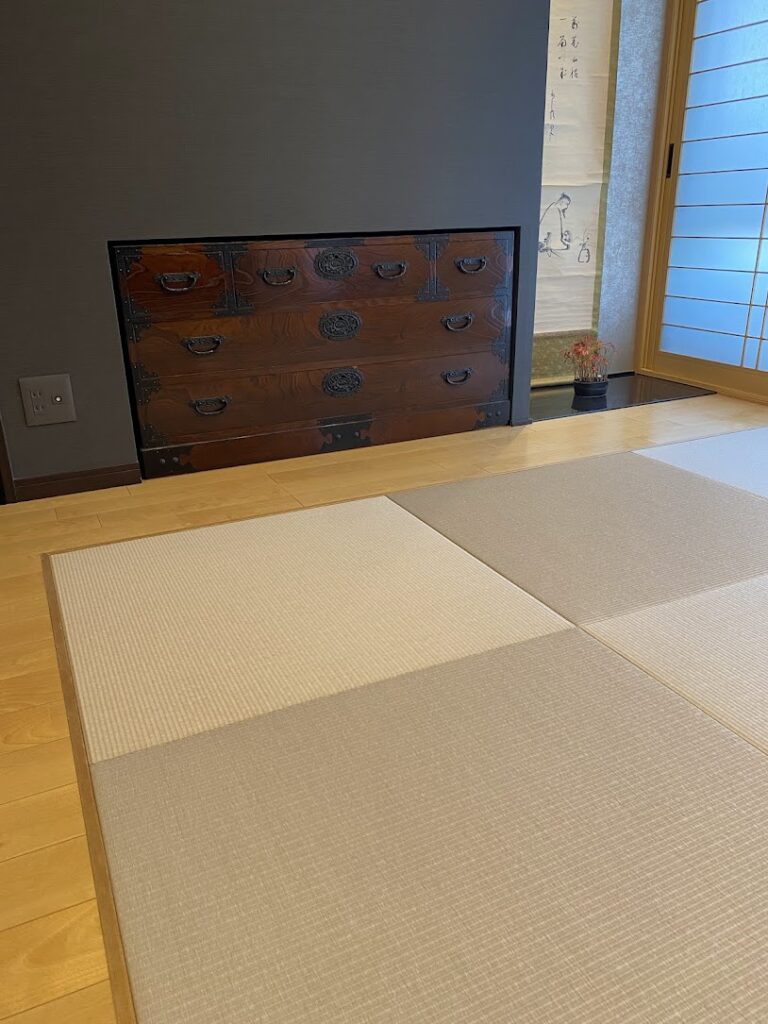 ホーム 製品紹介 サービス・料金 施工の流れ 井上製畳所について お知らせ/施工事例 お問い合わせ お知らせ/施工事例 リビングと繋がるお洒落な「和空間」灰桜色の琉球畳 お部屋の採寸から製作・納品 ダイケン和紙畳 琉球畳 新調 畳表:「清流 灰桜色」 畳床:ダイケン畳床 厚み:55㎜ 七畳半間 新調 価格: 11,500円 × 15帖 172,500円(税込) 「井上製畳所」 が製作する畳は全て オーダー 品です。 <お部屋の寸法・歪み・柱型・厚み等を正確に採寸し畳を製作致します> 2025年12月1日 « 前の記事へ 次の記事へ » アーカイブ 2026年1月 (11) 2025年12月 (26) 2025年11月 (23) 2025年10月 (23) 2025年9月 (26) 2025年8月 (22) 2025年7月 (27) 2025年6月 (24) 2025年5月 (27) 2025年4月 (25) 2025年3月 (26) 2025年2月 (24) 2025年1月 (24) 2024年12月 (23) 2024年11月 (23) 2024年10月 (28) 2024年9月 (23) 2024年8月 (26) 2024年7月 (28) 2024年6月 (26) 2024年5月 (25) 2024年4月 (31) 2024年3月 (28) 2024年2月 (24) 2024年1月 (21) 2023年12月 (29) 2023年11月 (27) 2023年10月 (29) 2023年9月 (28) 2023年8月 (21) 2023年7月 (15) 2023年6月 (2) カテゴリー 「ダイケン和紙畳」(一畳サイズ縁付き) (257) 「琉球畳」(ダイケン和紙畳・半畳サイズ) (215) 「畳」施工例集 (536) ○い草 施工例集 (44) ○セキスイ美草(樹脂畳) (14) ○ふすま紙 張替 (104) ○小畳・縁雑貨 (132) ○洋室に畳・置き畳 (44) ○障子紙 張替 (53) ●お知らせ (28) ●定休日・営業時間 (9) ラインナップ (4) 畳縁 (5)