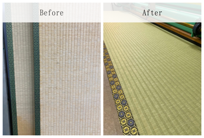 ホーム 製品紹介 サービス・料金 施工の流れ 井上製畳所について お知らせ/施工事例 お問い合わせ お知らせ/施工事例 い草から「ささくれない和紙畳表・銀白」に表替 <ダイケン和紙畳表> ○ ダニ ・ カビが発生しない畳表 ○ 撥水性・耐久性に優れている畳表 ○ 変色せず美しさが長持ちし・ささくれない畳表 ○ 清潔で安全・安心な畳表 表:ダイケン和紙畳表 「銀白100A 銀白色」 縁:新大宮 No70 高田織物 厚み:55mm 六畳間 表替 価格:9,000円×6帖 54,000円(税込) +柱型切り込み 2025年12月15日 « 前の記事へ 次の記事へ » アーカイブ 2026年1月 (11) 2025年12月 (26) 2025年11月 (23) 2025年10月 (23) 2025年9月 (26) 2025年8月 (22) 2025年7月 (27) 2025年6月 (24) 2025年5月 (27) 2025年4月 (25) 2025年3月 (26) 2025年2月 (24) 2025年1月 (24) 2024年12月 (23) 2024年11月 (23) 2024年10月 (28) 2024年9月 (23) 2024年8月 (26) 2024年7月 (28) 2024年6月 (26) 2024年5月 (25) 2024年4月 (31) 2024年3月 (28) 2024年2月 (24) 2024年1月 (21) 2023年12月 (29) 2023年11月 (27) 2023年10月 (29) 2023年9月 (28) 2023年8月 (21) 2023年7月 (15) 2023年6月 (2) カテゴリー 「ダイケン和紙畳」(一畳サイズ縁付き) (257) 「琉球畳」(ダイケン和紙畳・半畳サイズ) (215) 「畳」施工例集 (536) ○い草 施工例集 (44) ○セキスイ美草(樹脂畳) (14) ○ふすま紙 張替 (104) ○小畳・縁雑貨 (132) ○洋室に畳・置き畳 (44) ○障子紙 張替 (53) ●お知らせ (28) ●定休日・営業時間 (9) ラインナップ (4) 畳縁 (5)