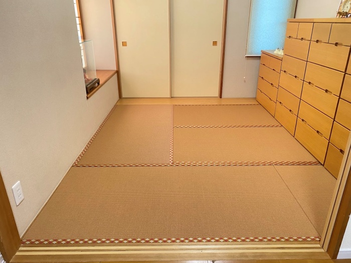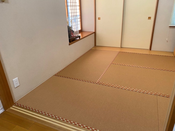 ホーム 製品紹介 サービス・料金 施工の流れ 井上製畳所について お知らせ/施工事例 お問い合わせ お知らせ/施工事例 「清流・亜麻色」×「今様」畳表替・襖・障子の張替 ○ ダイケン和紙畳 表替 畳表 :清流・亜麻色(目積織) 畳縁 :今様No200 (高田織物) 厚み : 30㎜ 表替 四畳半間 畳シート(床掃除後に敷き込み) 襖紙張替 和紙襖紙「燦SAN No2801 鳥の子色」 丈長サイズ(2350mm)両面 壁紙シンコー×和紙襖紙「燦」 2025年12月25日 « 前の記事へ 次の記事へ » アーカイブ 2026年1月 (11) 2025年12月 (26) 2025年11月 (23) 2025年10月 (23) 2025年9月 (26) 2025年8月 (22) 2025年7月 (27) 2025年6月 (24) 2025年5月 (27) 2025年4月 (25) 2025年3月 (26) 2025年2月 (24) 2025年1月 (24) 2024年12月 (23) 2024年11月 (23) 2024年10月 (28) 2024年9月 (23) 2024年8月 (26) 2024年7月 (28) 2024年6月 (26) 2024年5月 (25) 2024年4月 (31) 2024年3月 (28) 2024年2月 (24) 2024年1月 (21) 2023年12月 (29) 2023年11月 (27) 2023年10月 (29) 2023年9月 (28) 2023年8月 (21) 2023年7月 (15) 2023年6月 (2) カテゴリー 「ダイケン和紙畳」(一畳サイズ縁付き) (257) 「琉球畳」(ダイケン和紙畳・半畳サイズ) (215) 「畳」施工例集 (536) ○い草 施工例集 (44) ○セキスイ美草(樹脂畳) (14) ○ふすま紙 張替 (104) ○小畳・縁雑貨 (132) ○洋室に畳・置き畳 (44) ○障子紙 張替 (53) ●お知らせ (28) ●定休日・営業時間 (9) ラインナップ (4) 畳縁 (5)
