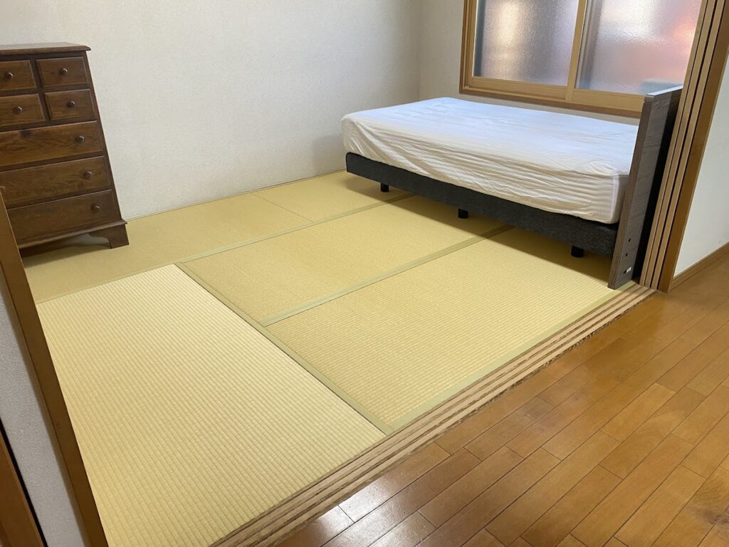 「寝室」×「黄金和紙畳」ダニ・カビ・ささくれの心配がない健康畳