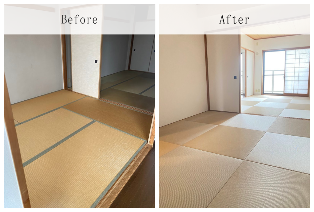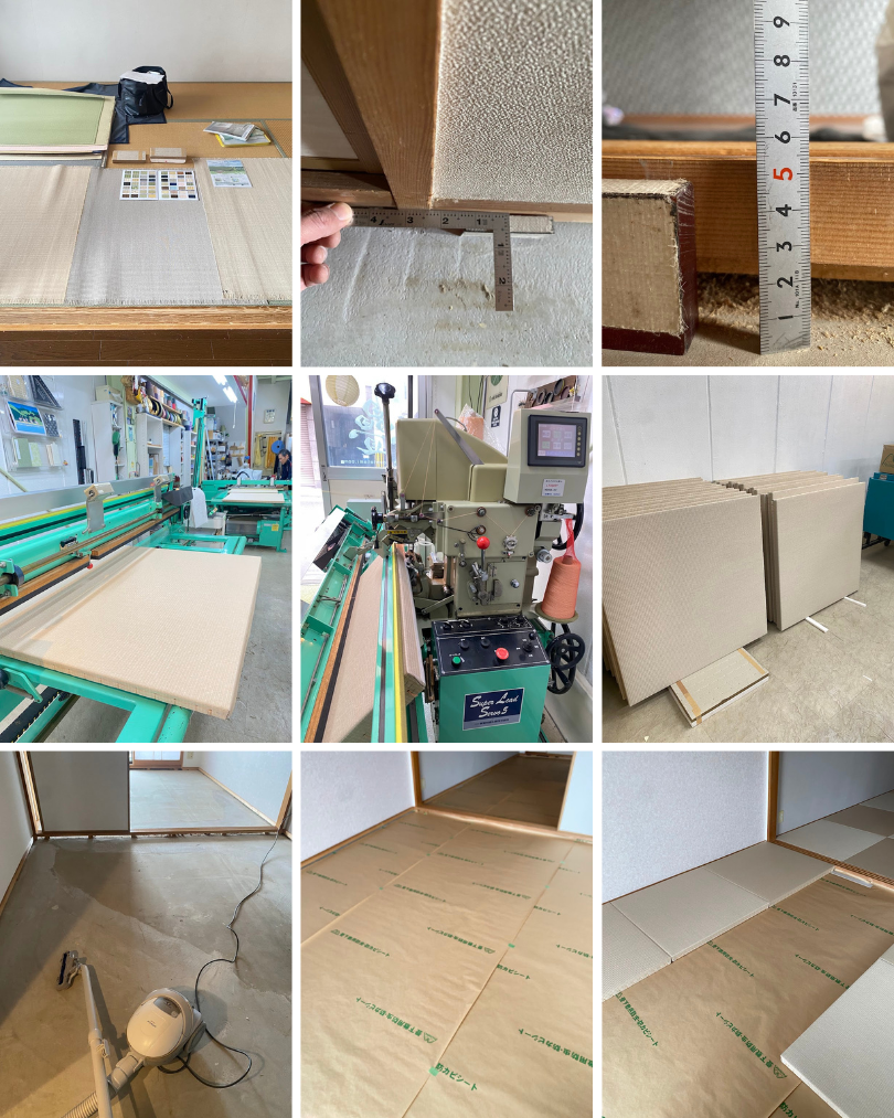 お見積り・お部屋の採寸・製作・古畳の引き取り・床掃除後に畳シート敷き込み・納品